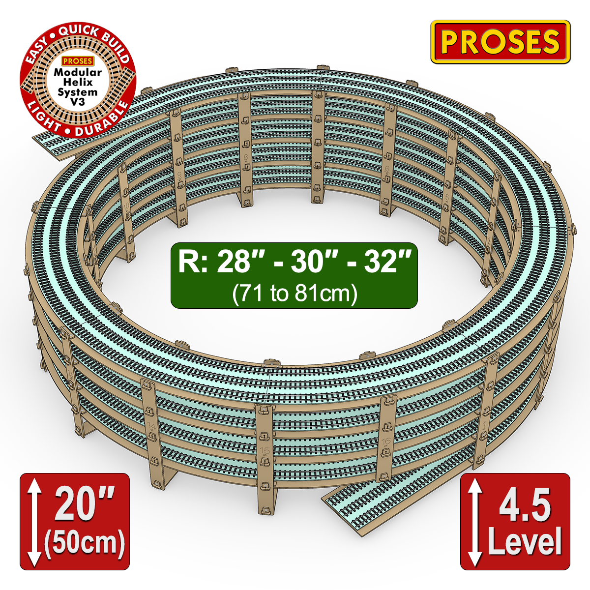 - Fonctionnement silencieux : toutes nos hélices comprennent des plateformes de voie de 3 mm d'épaisseur, garantissant un fonctionnement plus silencieux des trains.
