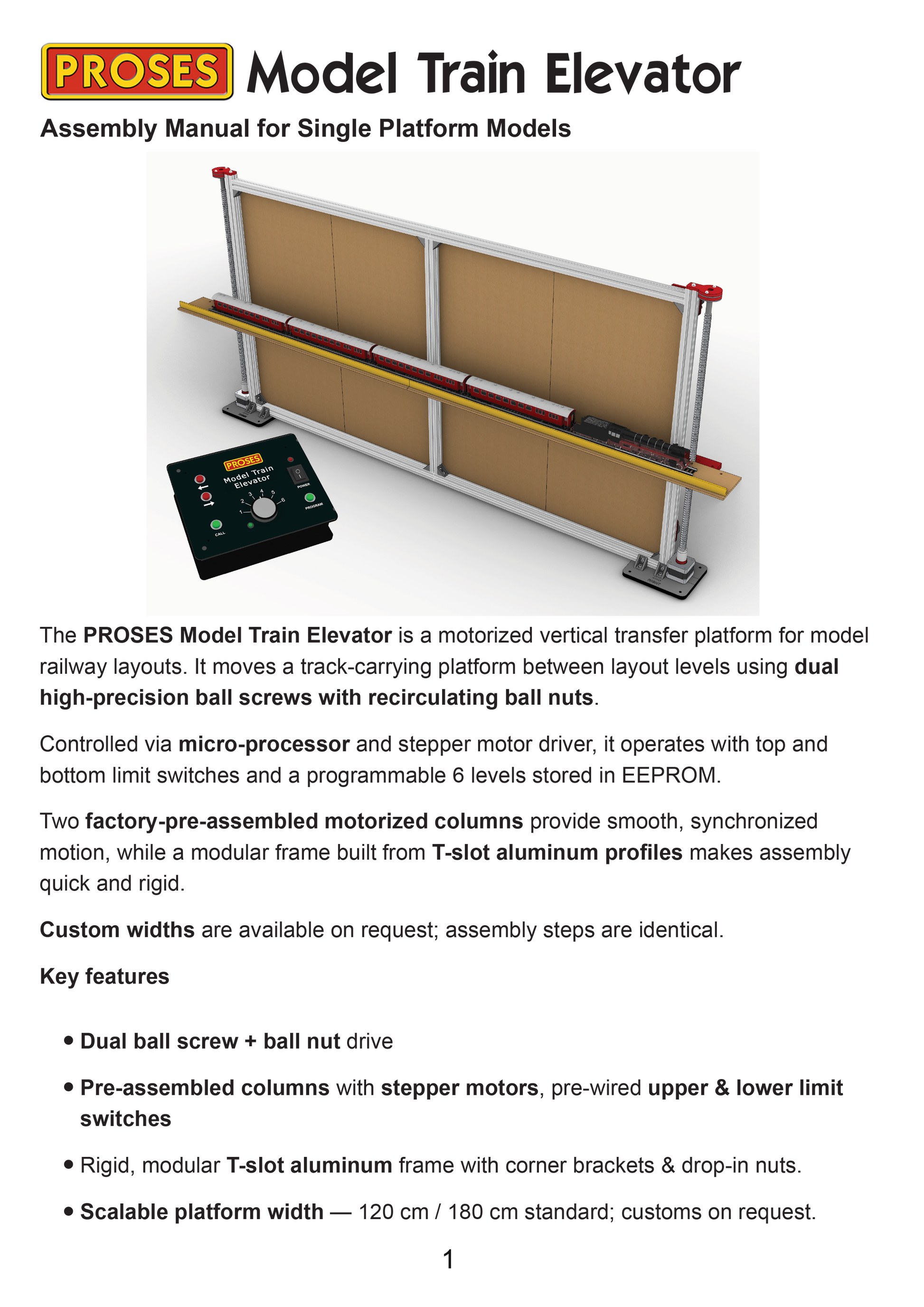 The PTE-124 by PROSES is a high-precision 6-level vertical train elevator designed to transport model trains smoothly and reliably between layout levels.