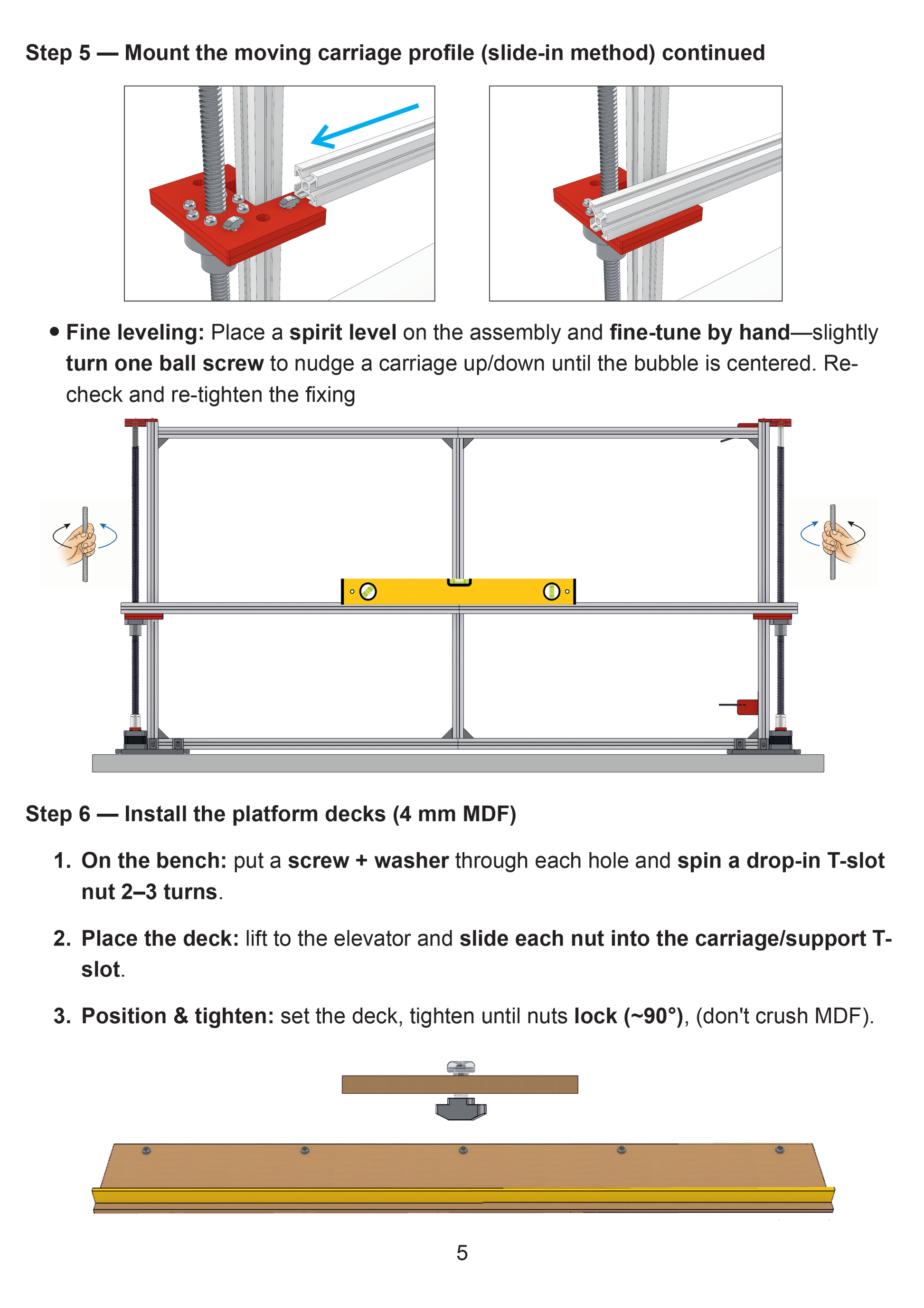 • Precision ball screws and ball nuts ensure smooth and stable vertical travel