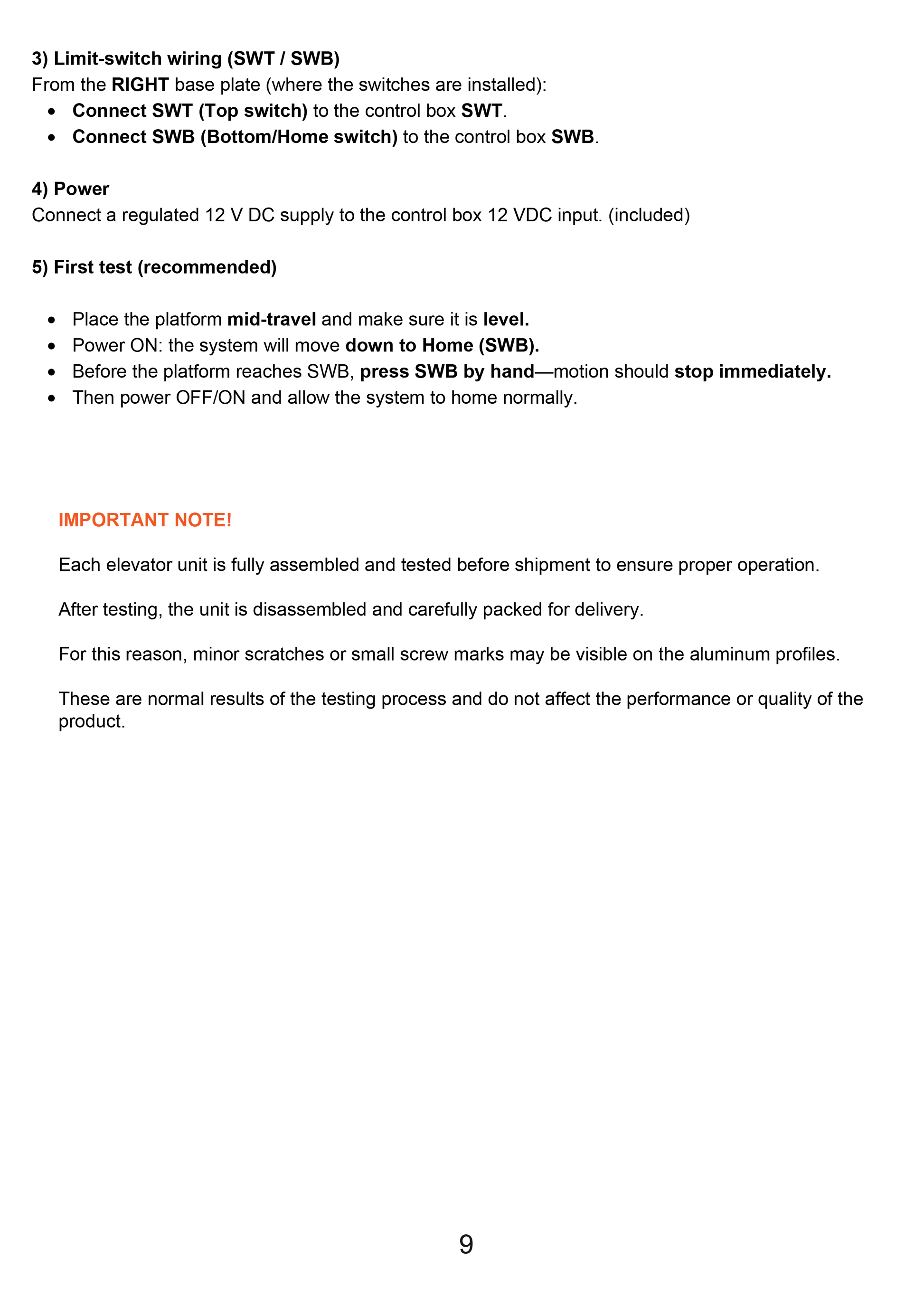 Up / Down buttons allow manual positioning during installation and adjustments.